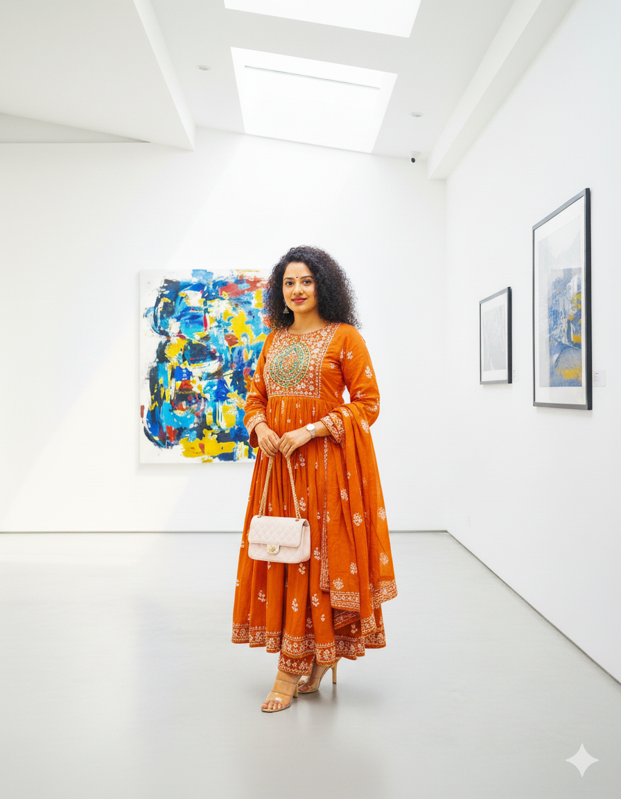 Elegant Rust Orange Anarkali Suit with Embroidered Detailing