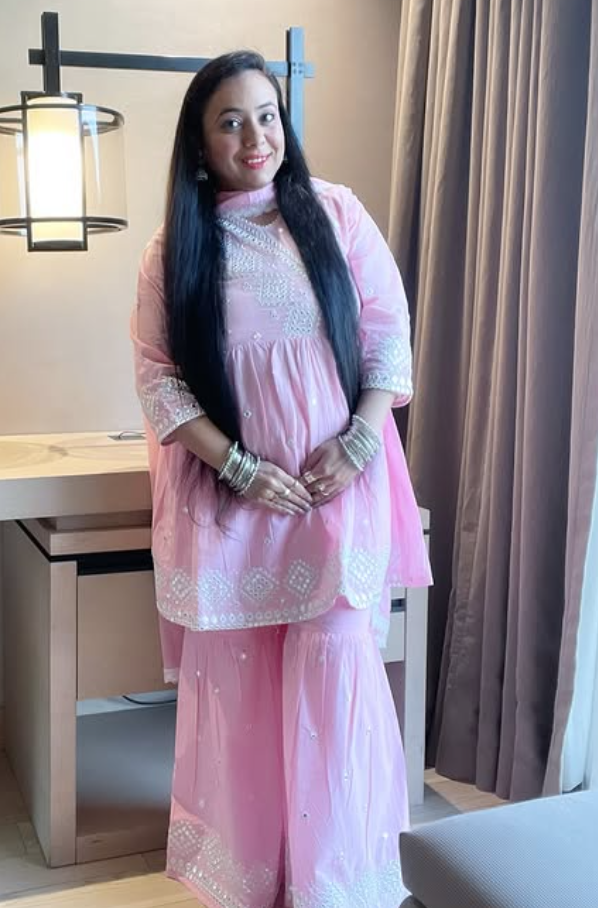 Pink Leheriya Cotton Blend Embroidered Suit Set For Women