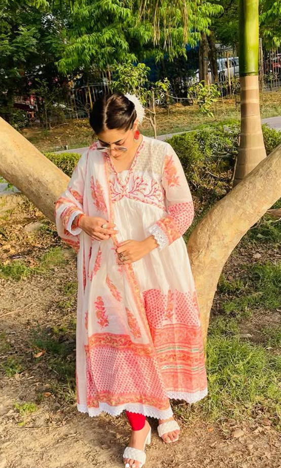Rose Pink Floral Embroidered Kurti Set